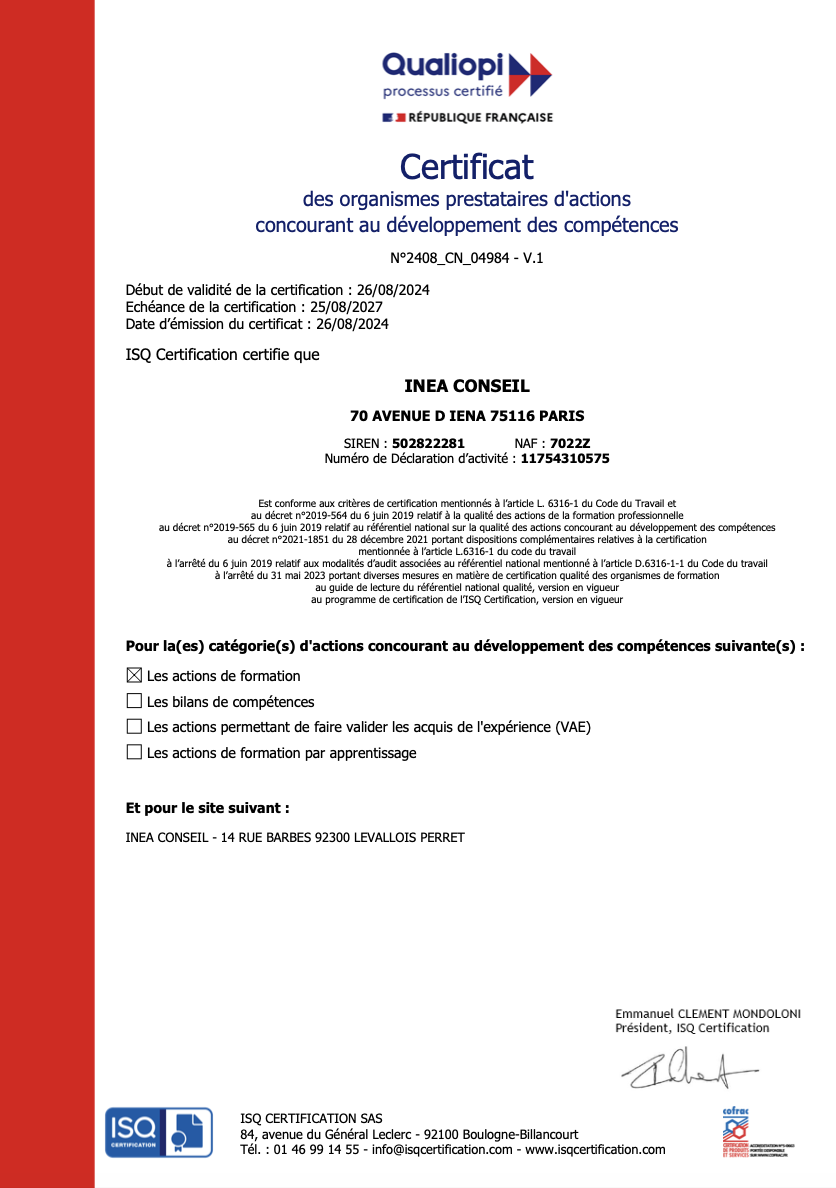 Chez Inéa Conseil, nous savons qu’une formation n’est pas un simple moment d’apprentissage : c’est un levier de transformation, un engagement mutuel, et un investissement stratégique pour les entreprises comme pour les professionnels.